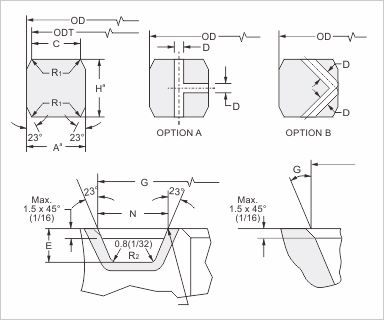 在SBX環(huán)截面兩壓力通道孔防止壓力鎖時(shí),連接是由水下。提供鉆井壓力通道孔兩種選擇。一個(gè)加寬容0,2 mm(0008)寬度和高度是允許的,只要在任何環(huán)的寬度或高度變化不超過0.1毫米(0004)沿整個(gè)圓周。