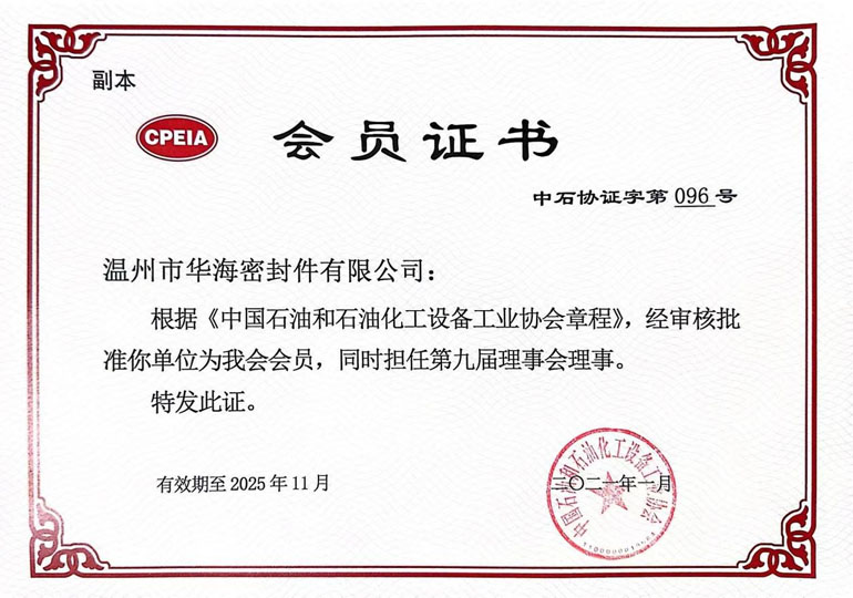 中國摩擦密封材料協(xié)會理事單位證書 中國液壓氣動密封件工業(yè)協(xié)會會員單位證書