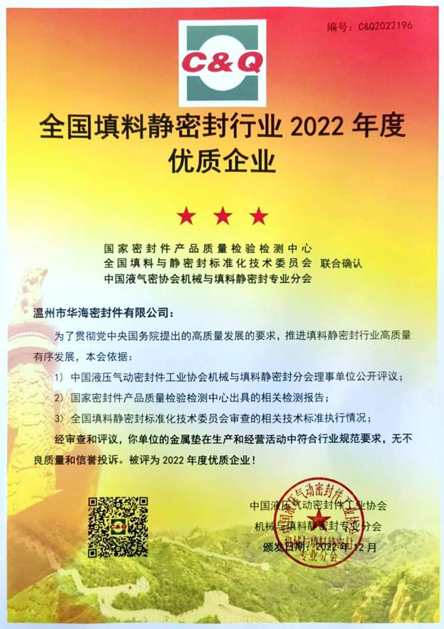浙江省科技型中小企業(yè)證書 2022年度中國液壓氣動密封件工業(yè)協(xié)會企業(yè)證書