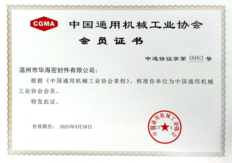 中國通用機(jī)械工業(yè)協(xié)會會員單位證書 慈溪密封行業(yè)協(xié)會會員單位證書